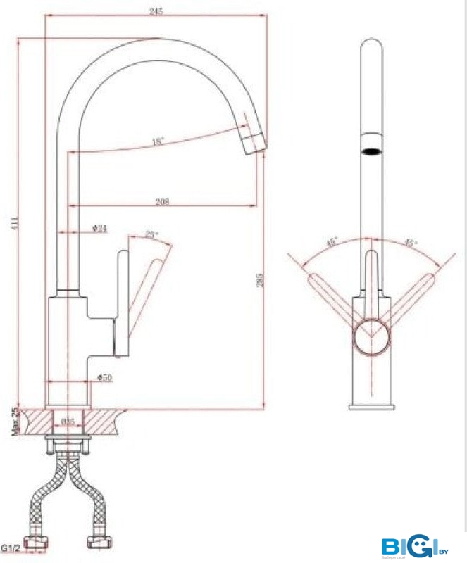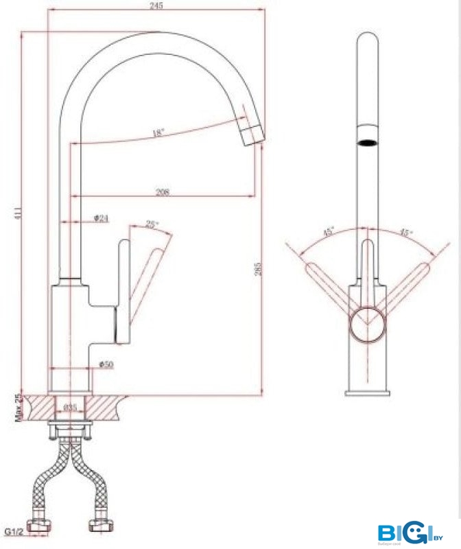 - Высота излива: 286 мм