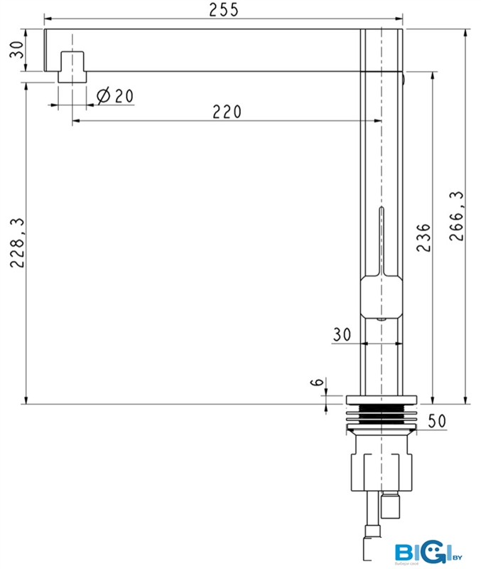 - Высота излива: 105 мм
