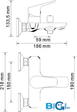 - Длина (вылет) излива: 118.26 мм