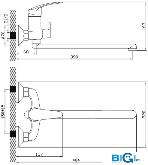 - Длина (вылет) излива: 170 мм