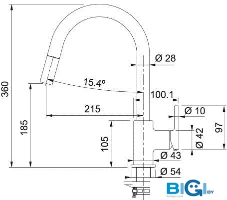 - Высота излива: 140 мм