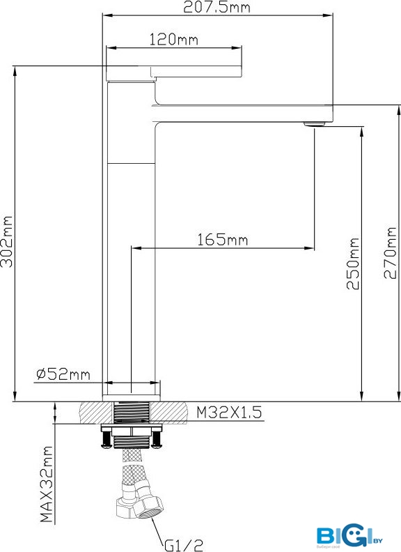 - Высота излива: 95 мм
