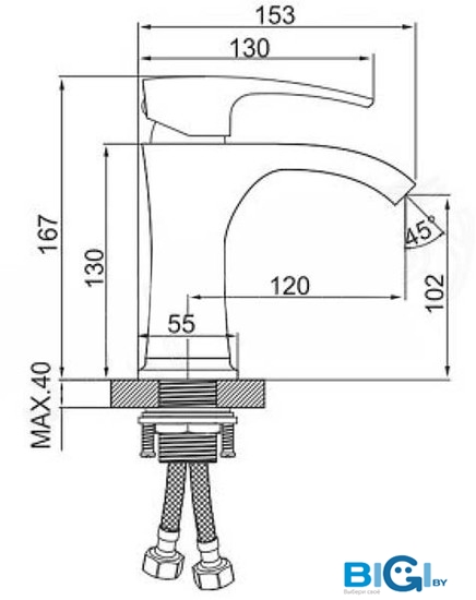 - Длина (вылет) излива: 224 мм