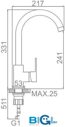 - Высота излива: 275 мм (max 280)