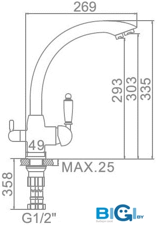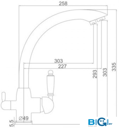 - Высота излива: 234 мм