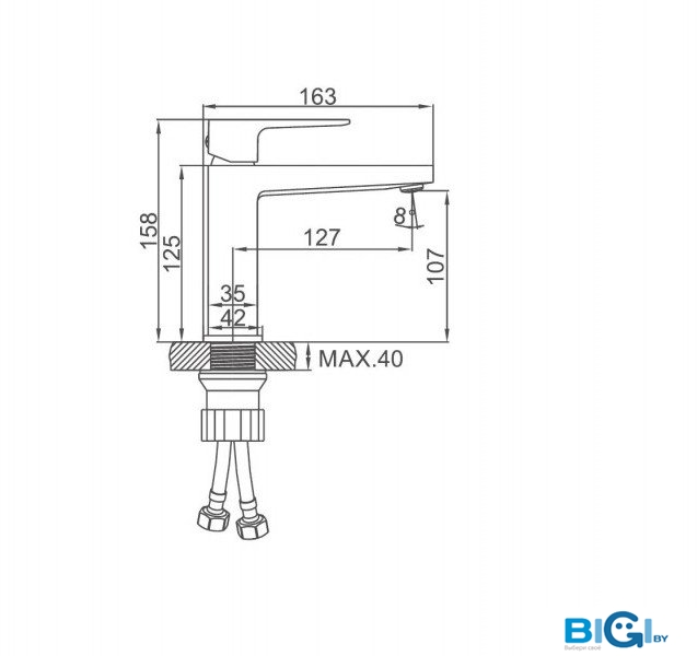- Длина (вылет) излива: 168 мм