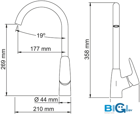 - Поворотный излив: Нет