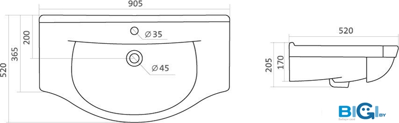 - Отверстие под смеситель: 1 шт.