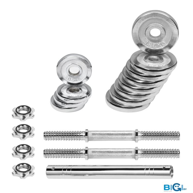 - Комплектация: - гриф гантельный 25 мм 2 шт по 34 см, посадочный размер для дисков 10 см; - замки винтовые 4 шт; - соединитель для формирования грифа 85 см; - 4 диска - 0,5 кг;- 4 диска - 1,25 кг; - 4 диска - 2,5 кг.