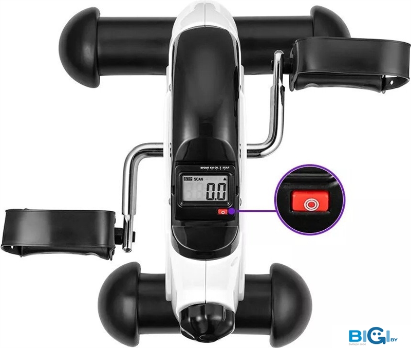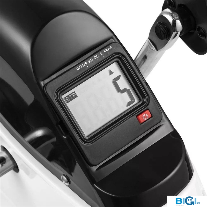 • Показания на дисплее: длительность тренировки, «пройденная» дистанция, количество оборотов педалей за тренировку, суммарное количество оборотов педалей и количество потребленных калорий.