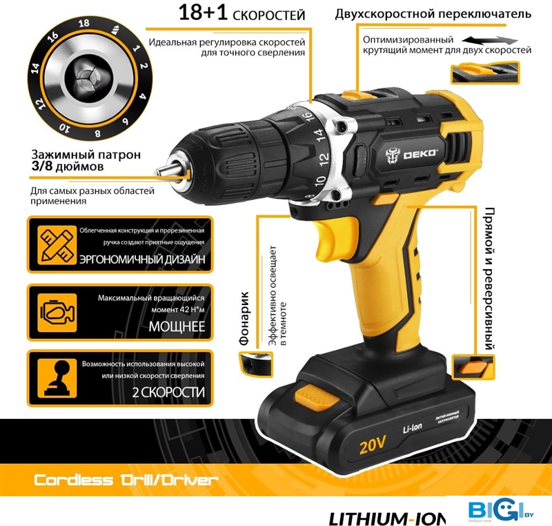 - Регулировка крутящего момента: 19 ступ. (18+1)