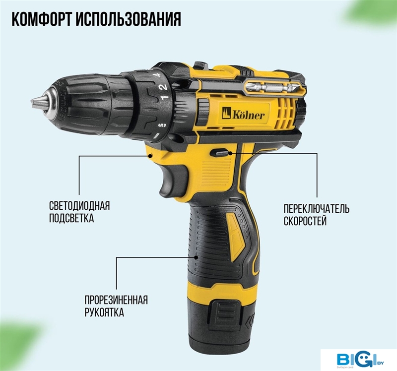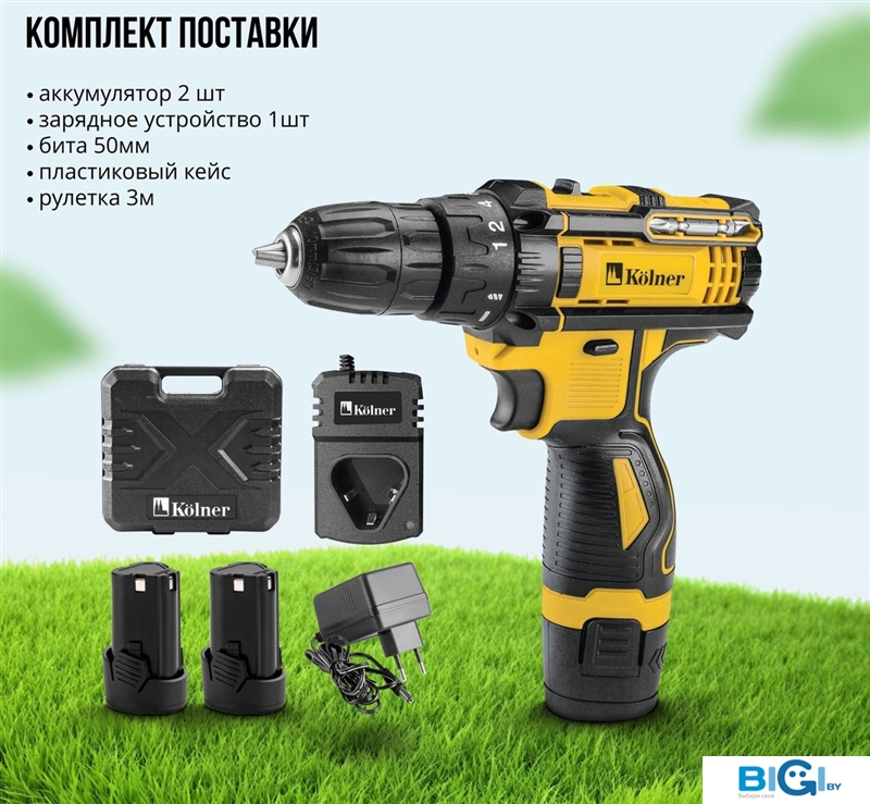Дрель-шуруповерт Kolner KCD 12/2C (с 2-мя АКБ, кейс), код 1351979