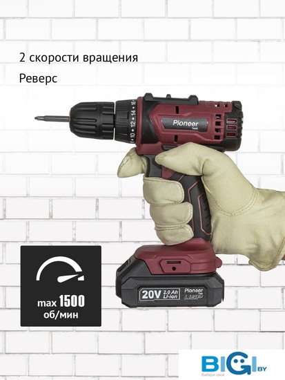 Дрель-шуруповерт Pioneer CD-M2002C-USP (с 2-мя АКБ, кейс, оснастка), код 1315124