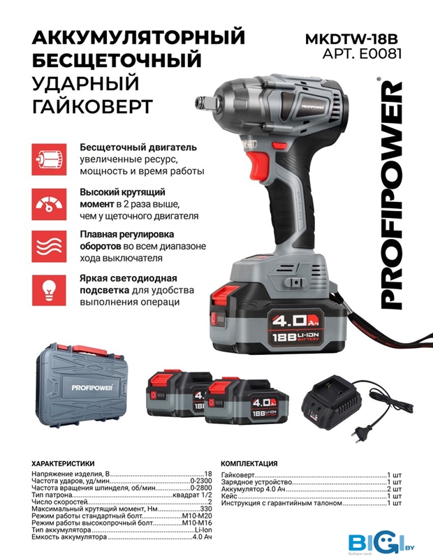 Дрель-шуруповерт Profipower MKBL-18B (с 2-мя АКБ, кейс), код 1347908