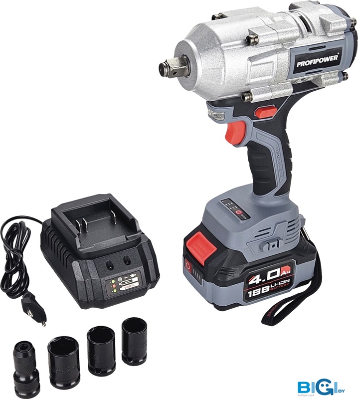 - Комплектация: - Гайковерт;- Комплект головок;- Адаптер бита;- Коробка;- Аккумулятор 1шт;- Зарядное устройство;- Инструкции с гарантийным талоном.