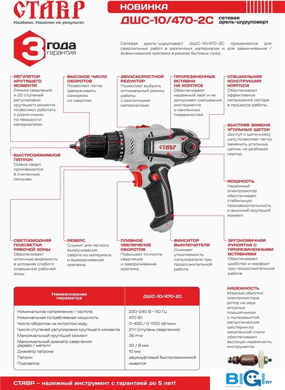 - Режимы работы: сверление, сверление с ударом
