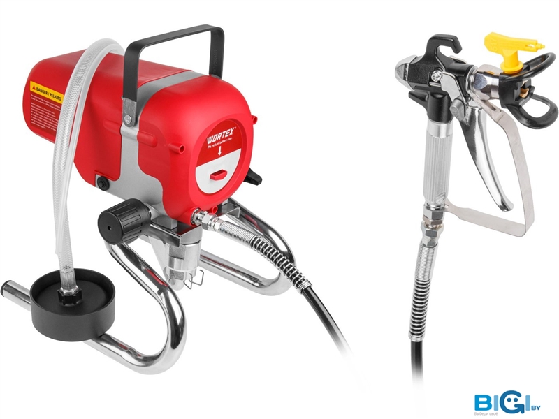 - Комплект поставки: - Пистолет;- Сопло для пистолета 517 (0,017");- Шланг высокого давления;- Шланг всасывающий;- Сливной шланг;- Фильтр;- Ключ для затяжки резьбовых соединений (3 шт.);- Щётка для прочистки;- Паспорт;