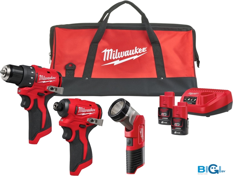 Milwaukee M12 BLPP3A-202B 4933499694 (шуруповерт, винтоверт, фонарь, 2 АКБ, сумка)