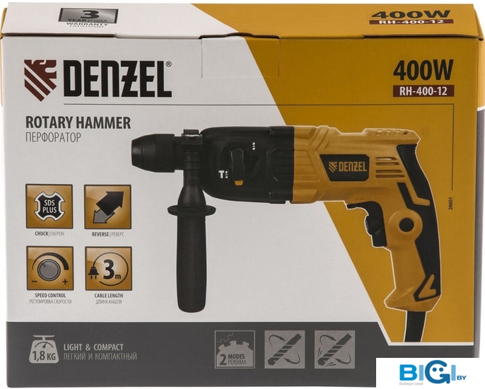 Перфоратор электрический DENZEL RH-400-12, код 778058