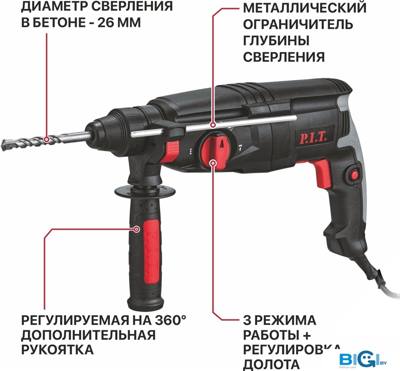 Перфоратор P.I.T. PBH26-C6 (кейс), код 1365840