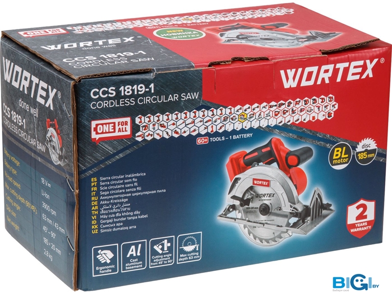 Дисковая (циркулярная) пила Wortex CCS 1819-1 1329533 (с 1-м АКБ, кейс), код 1353381