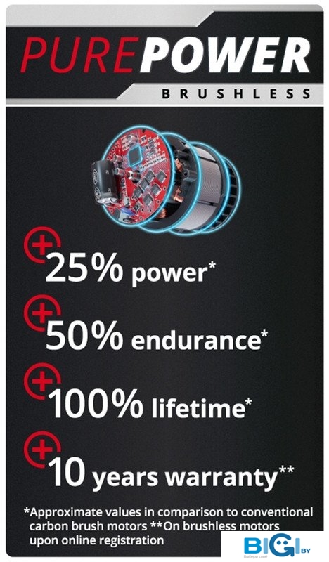 - Бесщеточный двигатель: Да