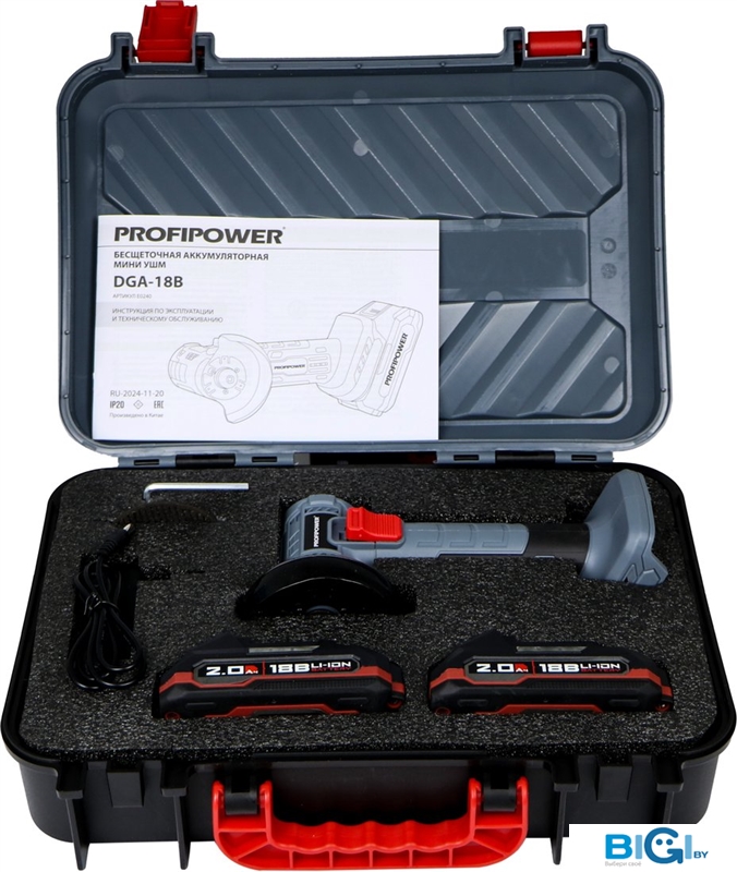 Угловая шлифмашина Profipower DGA-18B (с 2-мя АКБ, кейс), код 1368568