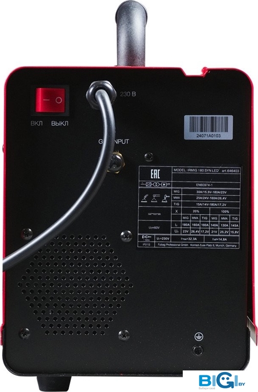 - Максимальный сварочный ток: 180 А (MMA: 160; TIG: 180)