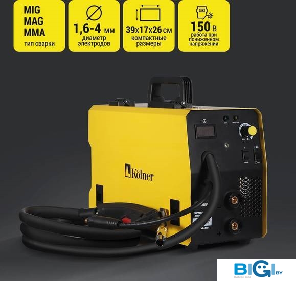 - Сварочный ток: 50 — 220 А (MIG: 50–220 А; MMA: 50–160 А; TIG: 50–200 А)