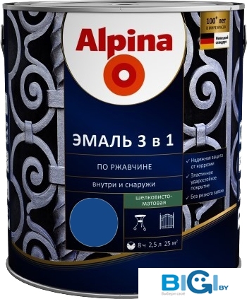 Эмаль Alpina Эмаль 3 в 1 по ржавчине (синий, шелковисто-матовая, 2.5 л)