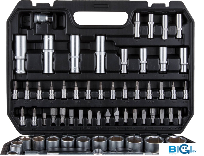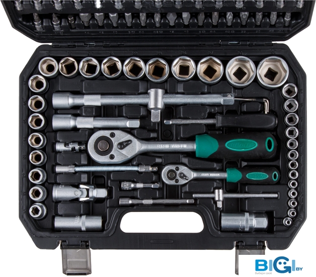- Комплектация: Головка торцевая 1/4": 4, 4.5, 5, 5.5, 6, 7, 8, 9, 10, 11, 12, 13, 14 мм;Головка торцевая длинная 1/4": 6, 7, 8, 9, 10, 11, 12, 13 мм;Головка торцевая 1/4": E4, E5, E6, E7, E8;Головка с насадкой HEX 1/4": H3, H4, H5, H6;Головка с насадкой TORX 1/4": T8, T10, T15, T20, T25, T30;Головка с насадкой SL 1/4": SL4, SL5.5, SL7;Головка с насадкой PH 1/4": PH1, PH2;Головка с насадкой PZ 1/4": PZ1, PZ2;Головка торцевая 1/2": 10, 11, 12, 13, 14, 15, 16, 17, 18, 19, 20, 21, 22, 23, 24, 27, 30, 32 мм;Головка торцевая длинная 1/2": 14, 15, 17, 19, 22 мм;Головка торцевая 1/2": E10, E11, E12, E14, E16, E18, E20, E24;Свечная головка 1/2": 16, 21 мм;Насадка 5/16" HEX: H7, H8, H10, H12, H14;Насадка 5/16" TORX: T40, T45, T50, T55, T60;Насадка 5/16" SL: SL8, SL10, SL12;Насадка 5/16" PH: PH3, PH4;Насадка 5/16" PZ: PZ3, PZ4;Трещотка 1/4";Удлинитель 1/4" 50 мм;Удлинитель 1/4" 100 мм;Кардан 1/4";Вороток-отвертка 1/4" 150 мм;Вороток 1/4" с плавающей головкой 115 мм;Трещотка 1/2";Переходник (держатель для бит) 1/2"х5/16"(HEX);Переходник 3/8"(F)х1/2"(М) с отверстием;Удлинитель 1/2" 125 мм;Удлинитель 1/2" 250 мм;Кардан 1/2";Ключ шестигранный Г-обр.: 1.5, 2, 2.5 мм;Кейс