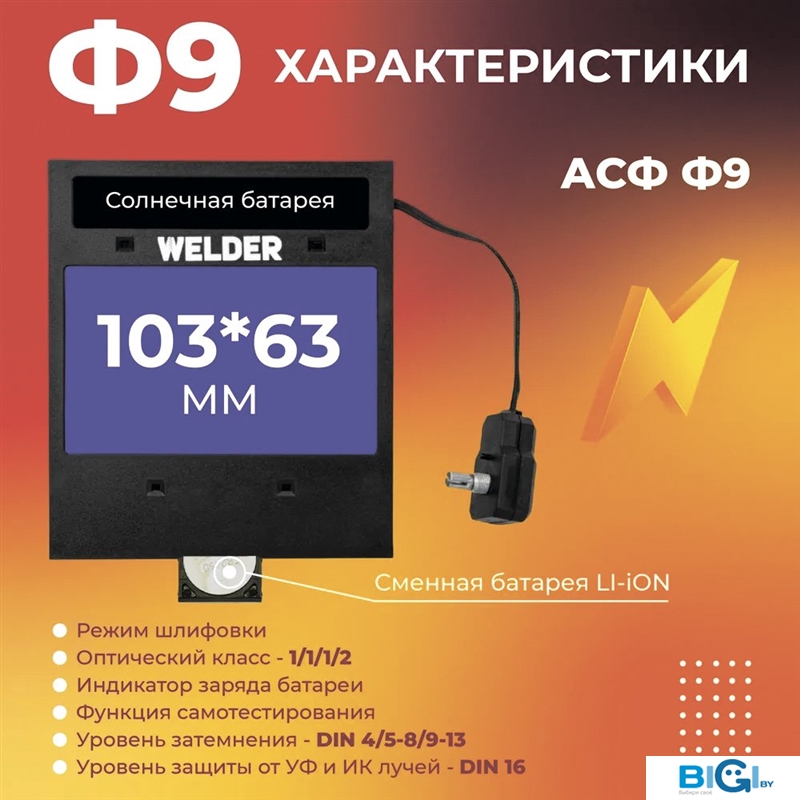 - Диапазон затемнения светофильтра: 9 — 13 DIN