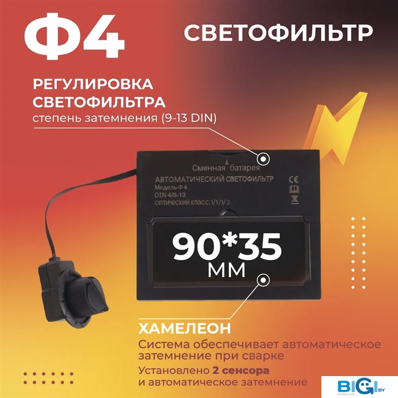 - Диапазон затемнения светофильтра: 9 — 13 DIN
