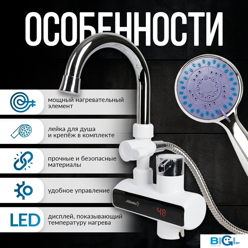 Проточный электрический водонагреватель на кран Atlanta ATH-7440, код 1369476