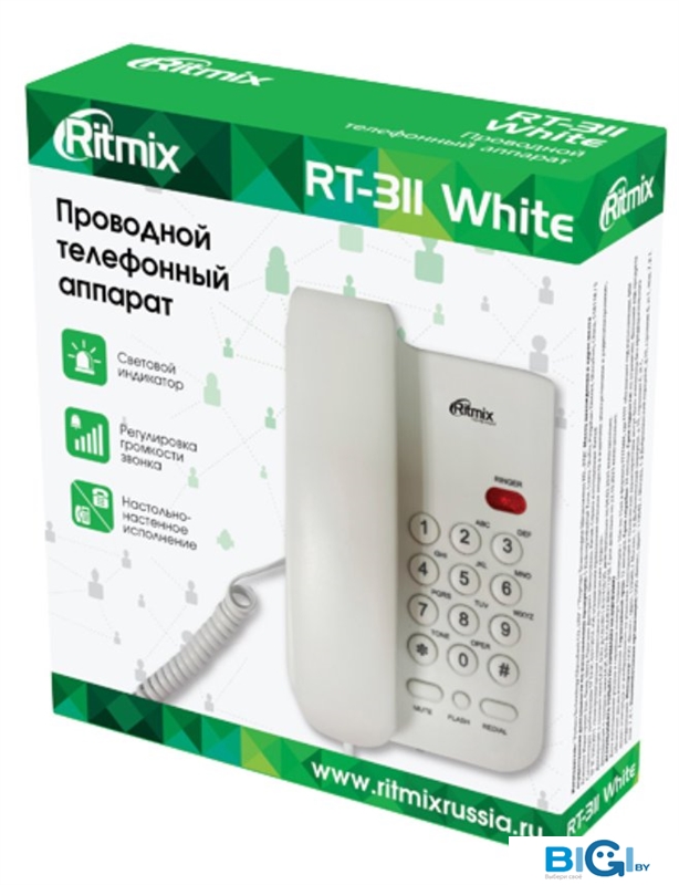 Проводной телефон Ritmix RT-311 (белый), код 1366184