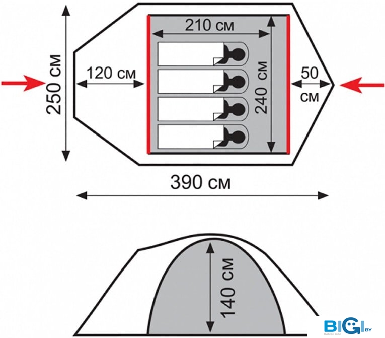 - Материал внутренней палатки: полиэстер