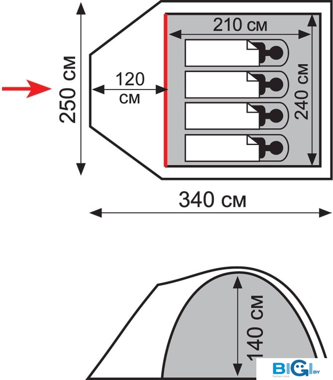 - Водостойкость тента: 2 000 мм вод. ст.