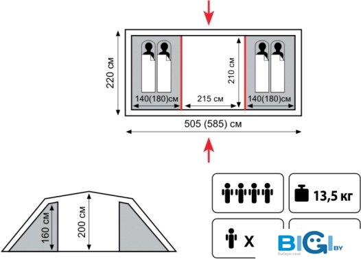 - Водостойкость тента: 6 000 мм вод. ст.