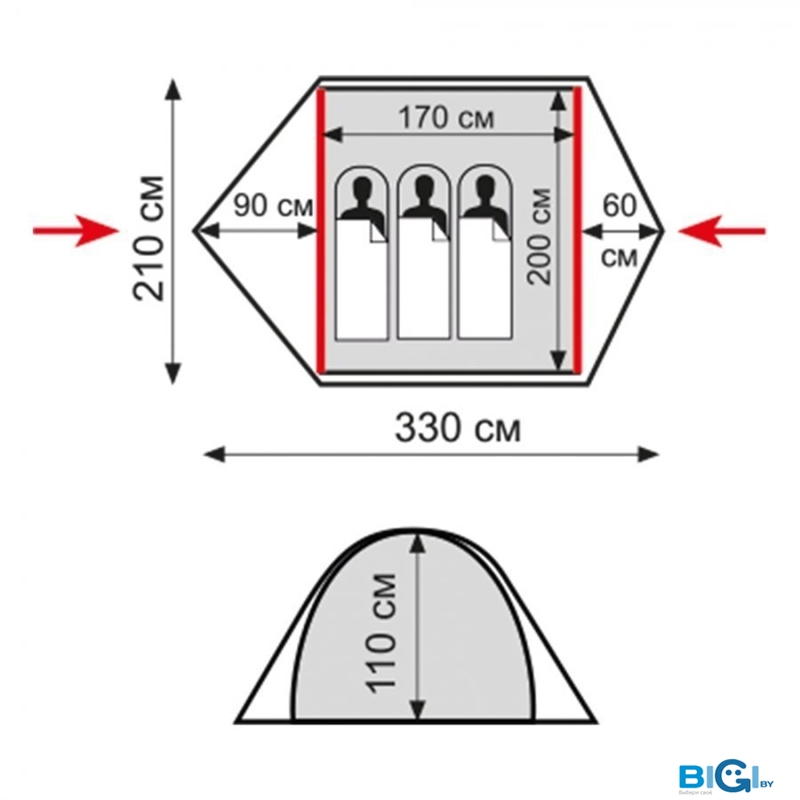 - Водостойкость тента: 3 000 мм вод. ст.