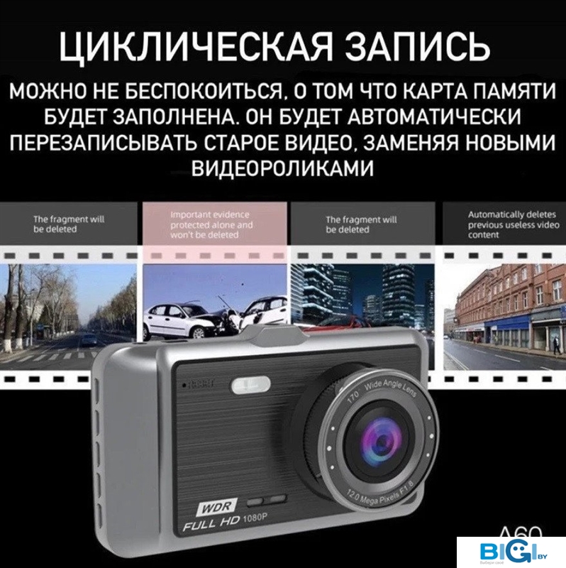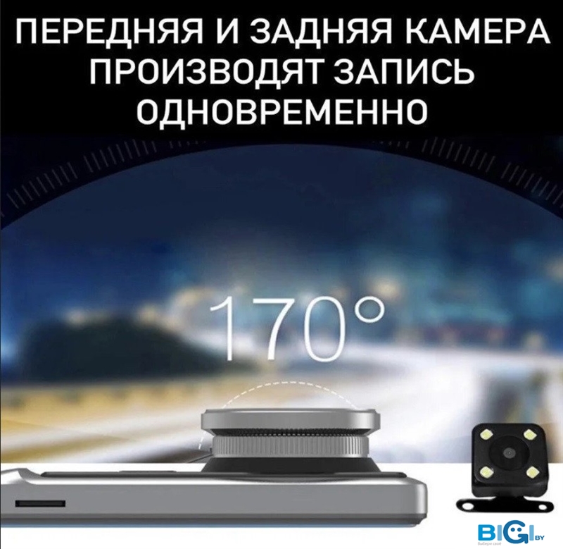 - Комплектация: - Автомобильный видеорегистратор- Зарядное устройство для автомобиля- Камера заднего вида- Кабель USB- Руководство пользователя
