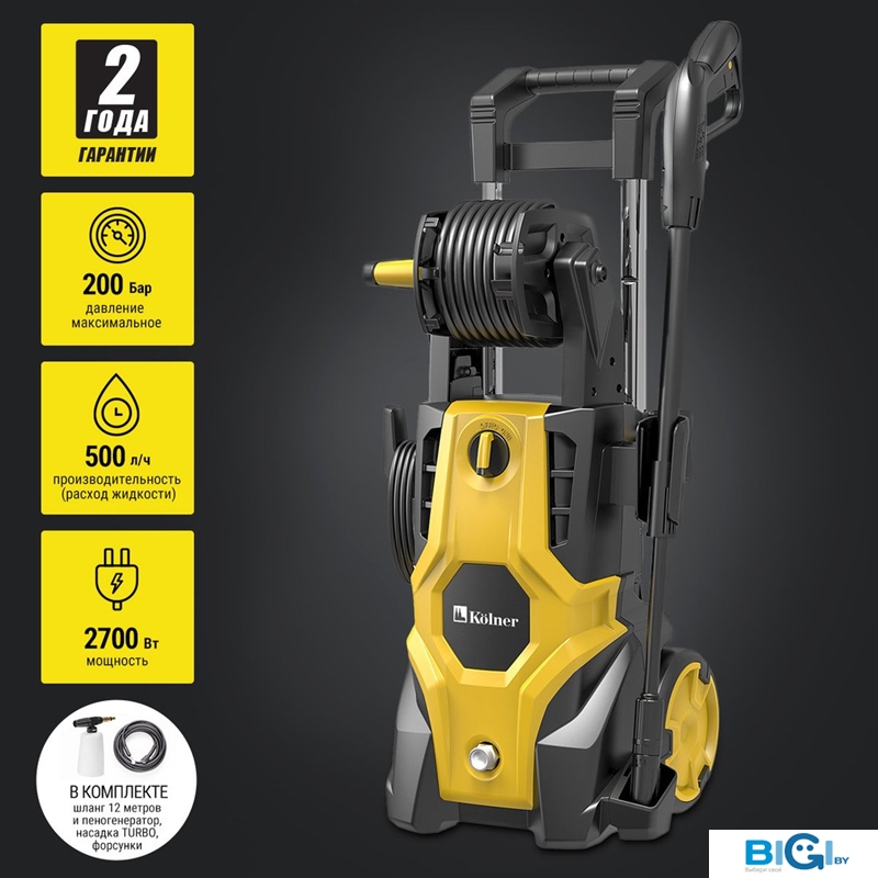 • Комплектация: - Мойка высокого давления - 1 шт.- Шланг высокого давления 5 м - 1 шт.- Пистолет - 1 шт.- Инструкция- Коробка